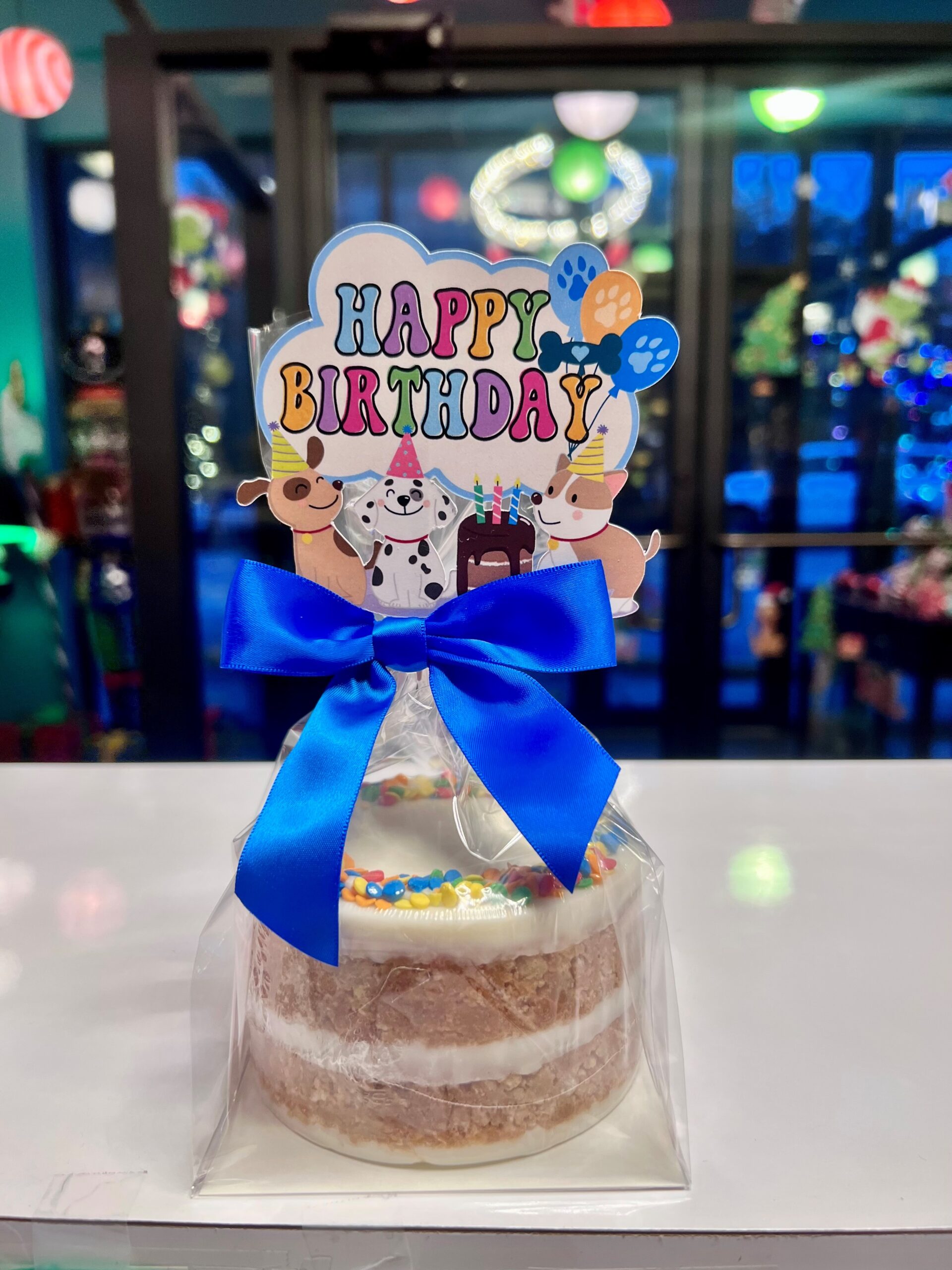 Our cakes are completely non-perishable and do not require freezer or refrigeration space.  These cakes have a long shelf life and are shrink wrapped to lock in the freshness.  No more receiving cracked or damaged cakes for your shop.  Not only are they great for retailers, the dogs absolutely love them.  We do not have a lot of fillers in our cakes, which leaves only yummy ingredients for the dogs.